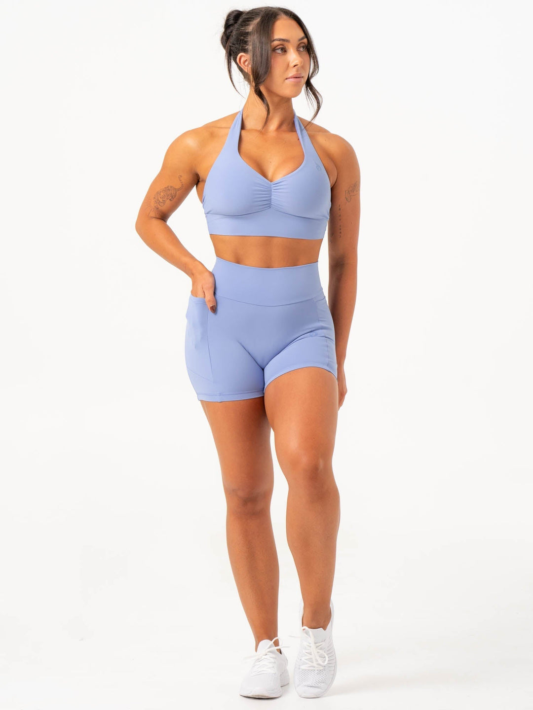 Home Womens Gym Shorts Scrunch Bum Shorts High Waisted Shorts NKD V Scrunch Pocket Shorts - Dreamy Blue